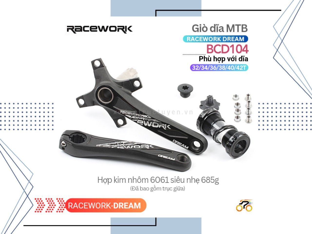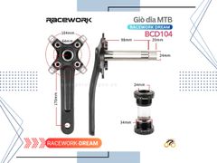GIÒ KHÔNG DĨA MTB - RACEWORK DREAM - BCD 104 (KÈM TRỤC RỖNG)