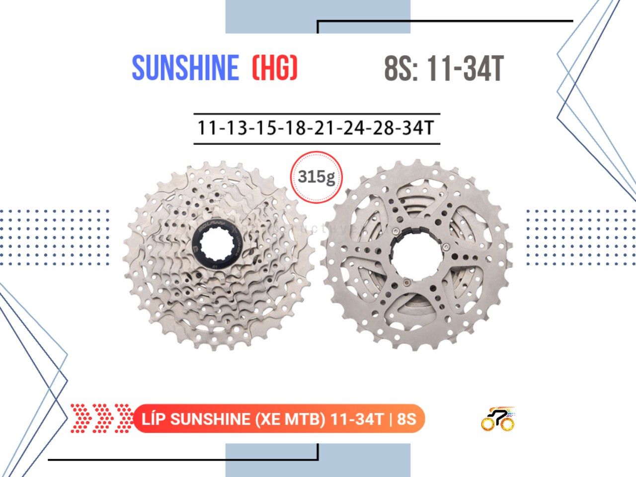 LÍP XE ĐẠP MTB - 11/34T - SUNSHINE - KIỂU THẢ (8 TỐC ĐỘ)